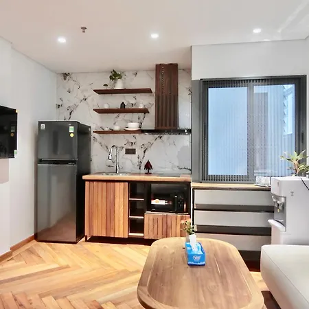 Een ingerichte kitchenette met een koelkast behoren tot de voorzieningen voor self-catering. 10 Dao Tan - Vien Vat ly bushalte is binnen handbereik van An Nhien Hotel Hanoi verwijderd.